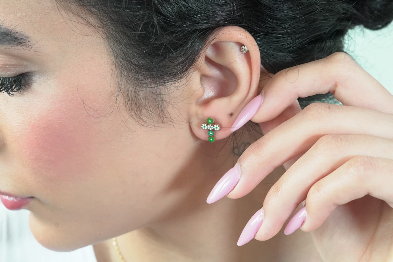 نیم ست استیل صلیب گل دار سبز کد 035 | شیکی و ظرافت در هر لحظه