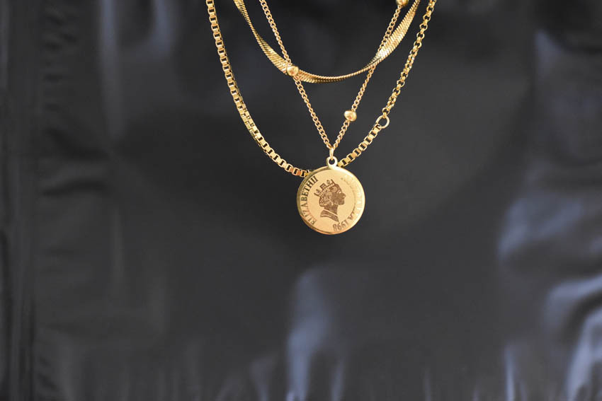 گردنبند سه لاین طرح سکه الیزابت | زیورآلات شیک و مد روز