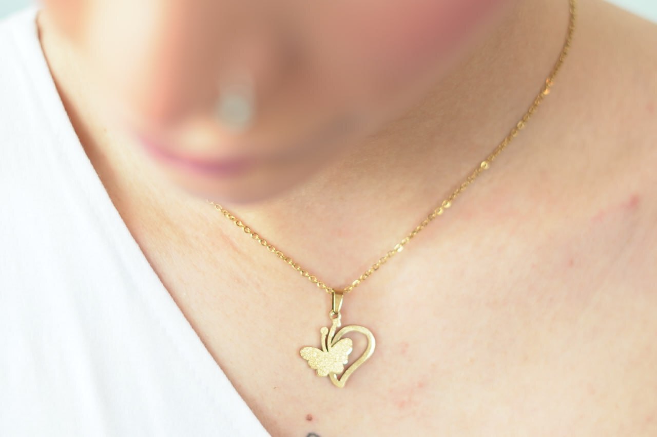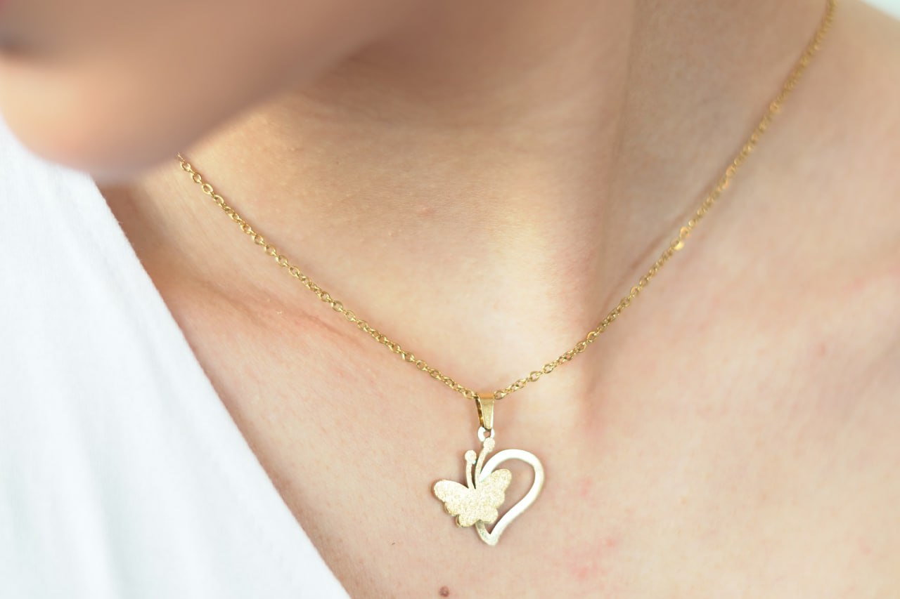 • یک عدد گردنبند استیل طرح پروانه