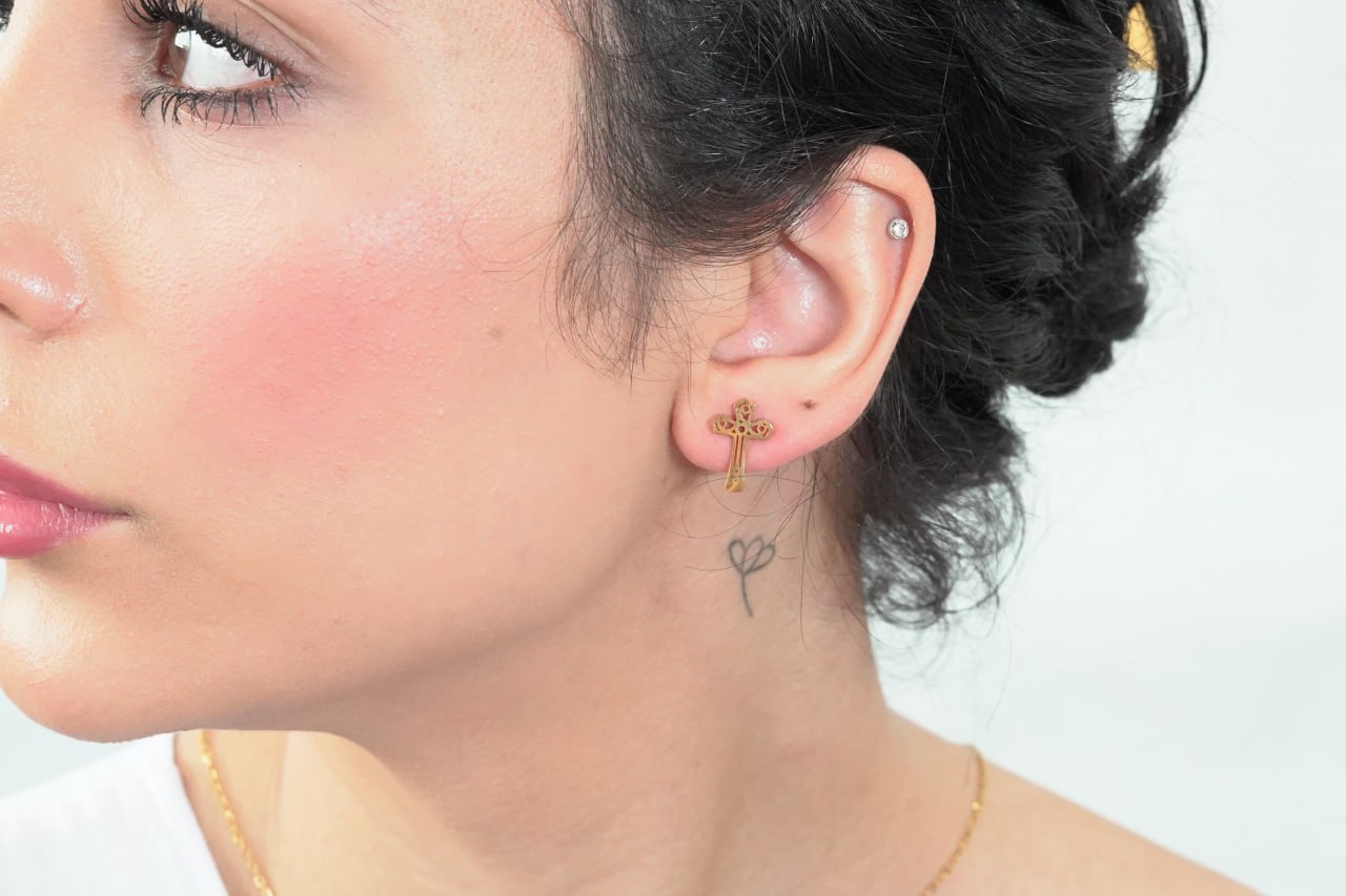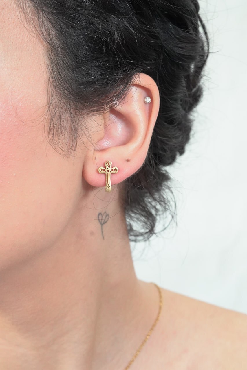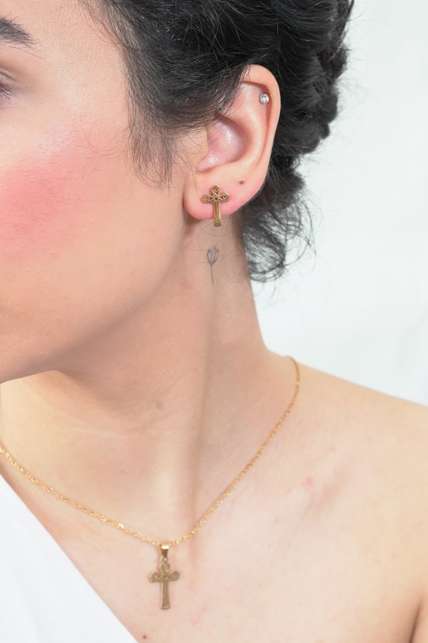 * یک جفت گوشواره صلیب طلایی: مکمل زیبایی گردنبند.
