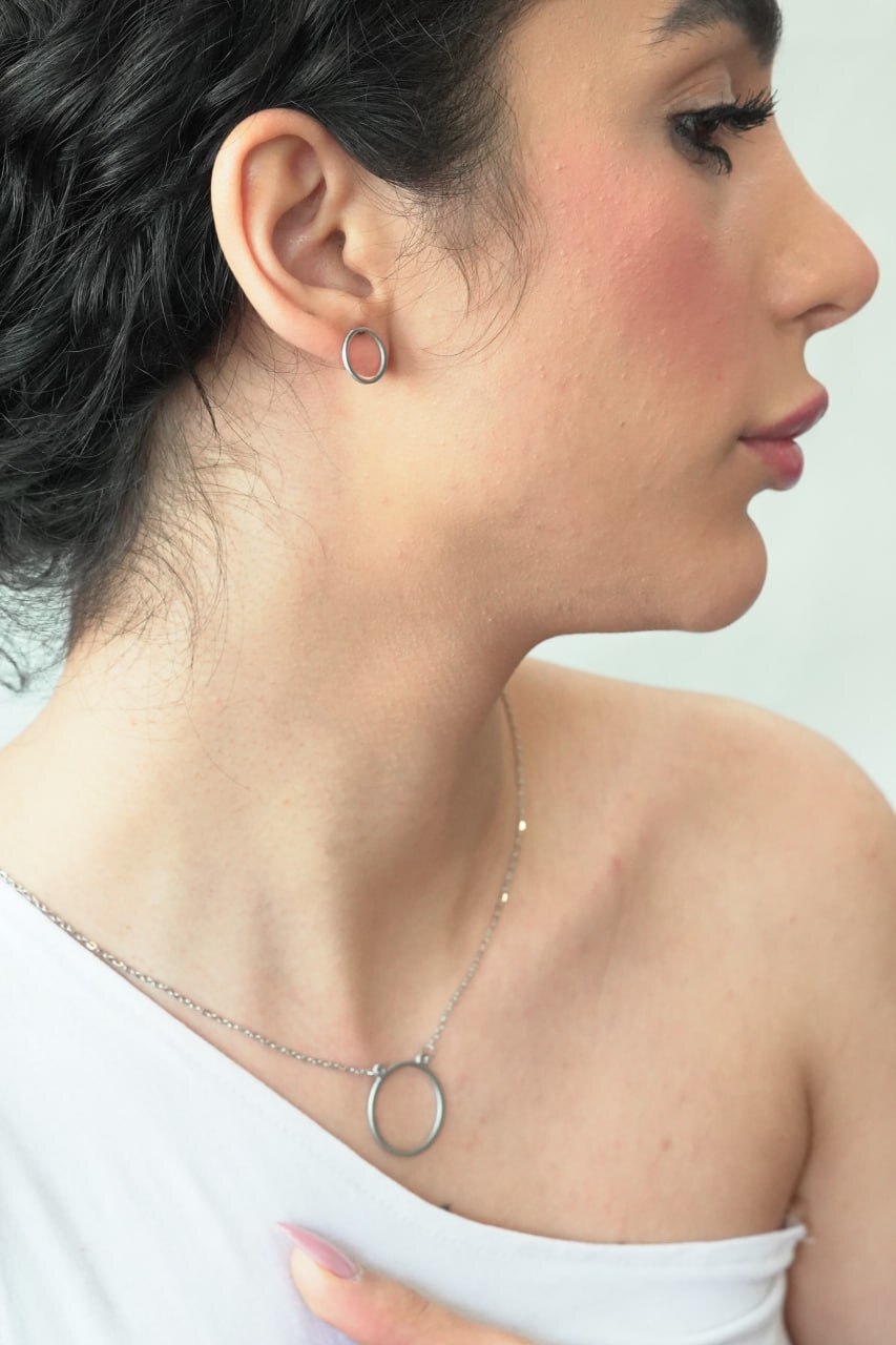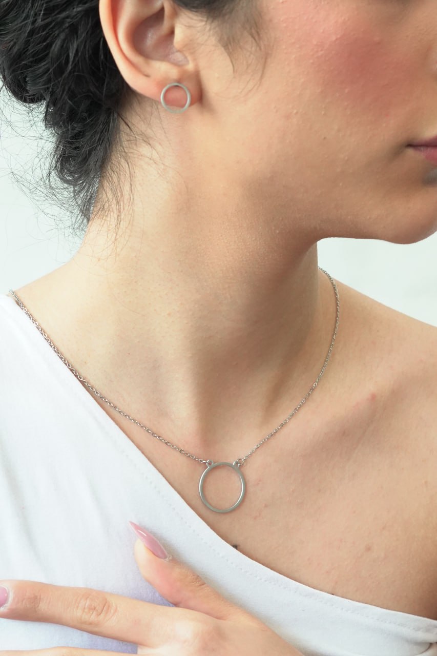 نیم ست استیل دایره نقره ای کد 039 | اکسسوری مدرن و جذاب
