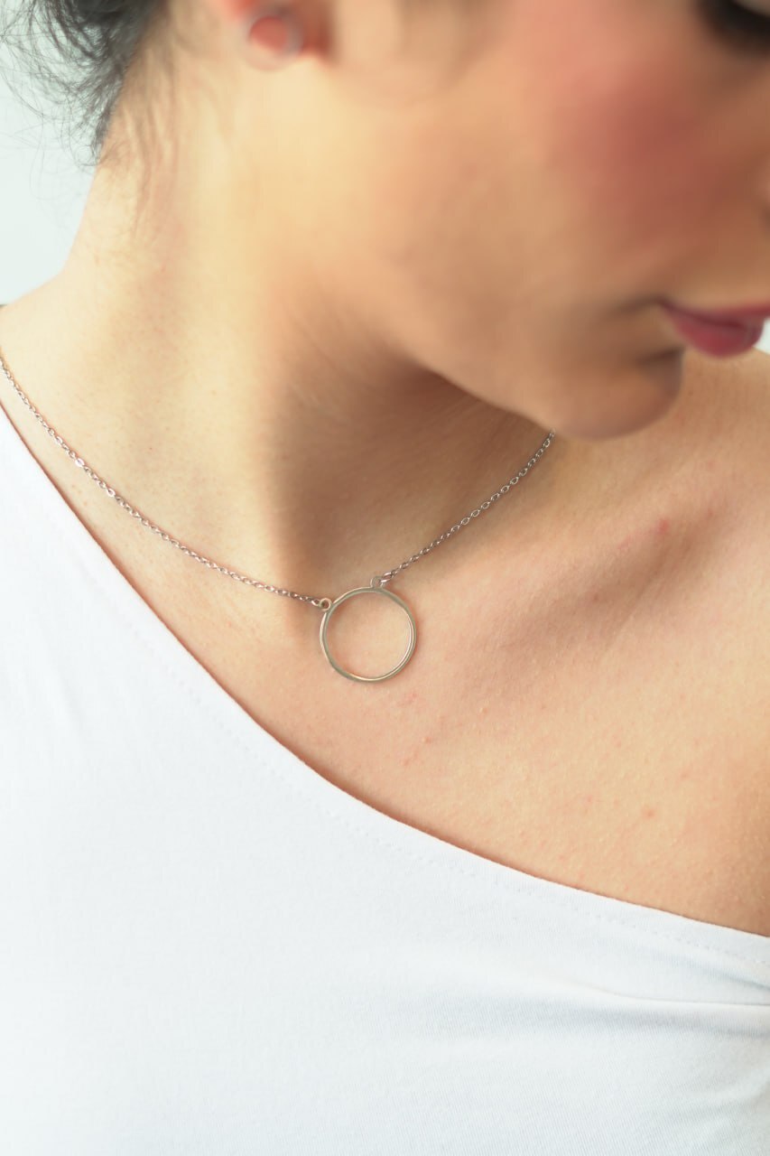 یک عدد گردنبند و یک جفت گوشواره طرح دایره نقره ای