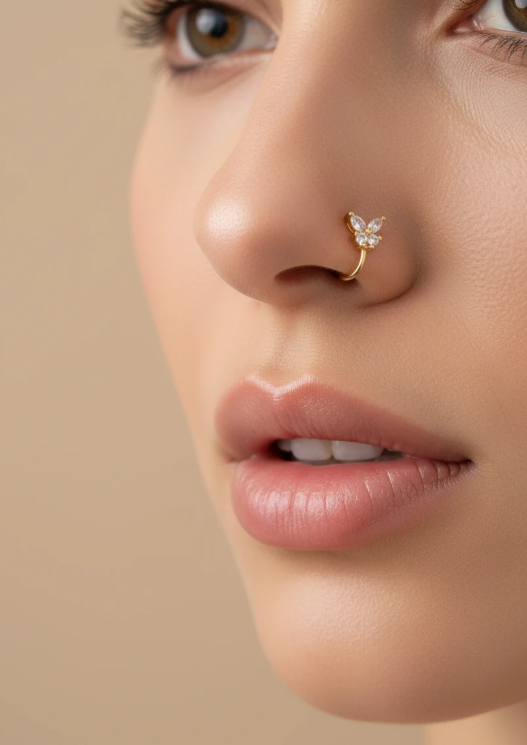 میگویند پروانه نماد “تغییر و زیبایی” است. حالا تصور کنید این نماد ظریف و درخشان روی چهره شما بنشیند! اگر همیشه دوست داشتید یک پیرسینگ بینی ظریف داشته باشید اما از درد سرسوزن فراری بودید، این پیرسینگ پروانهای فیک دقیقاً برای شما ساخته شده است. یک تغییر کوچک با تاثیری شگفتانگیز.