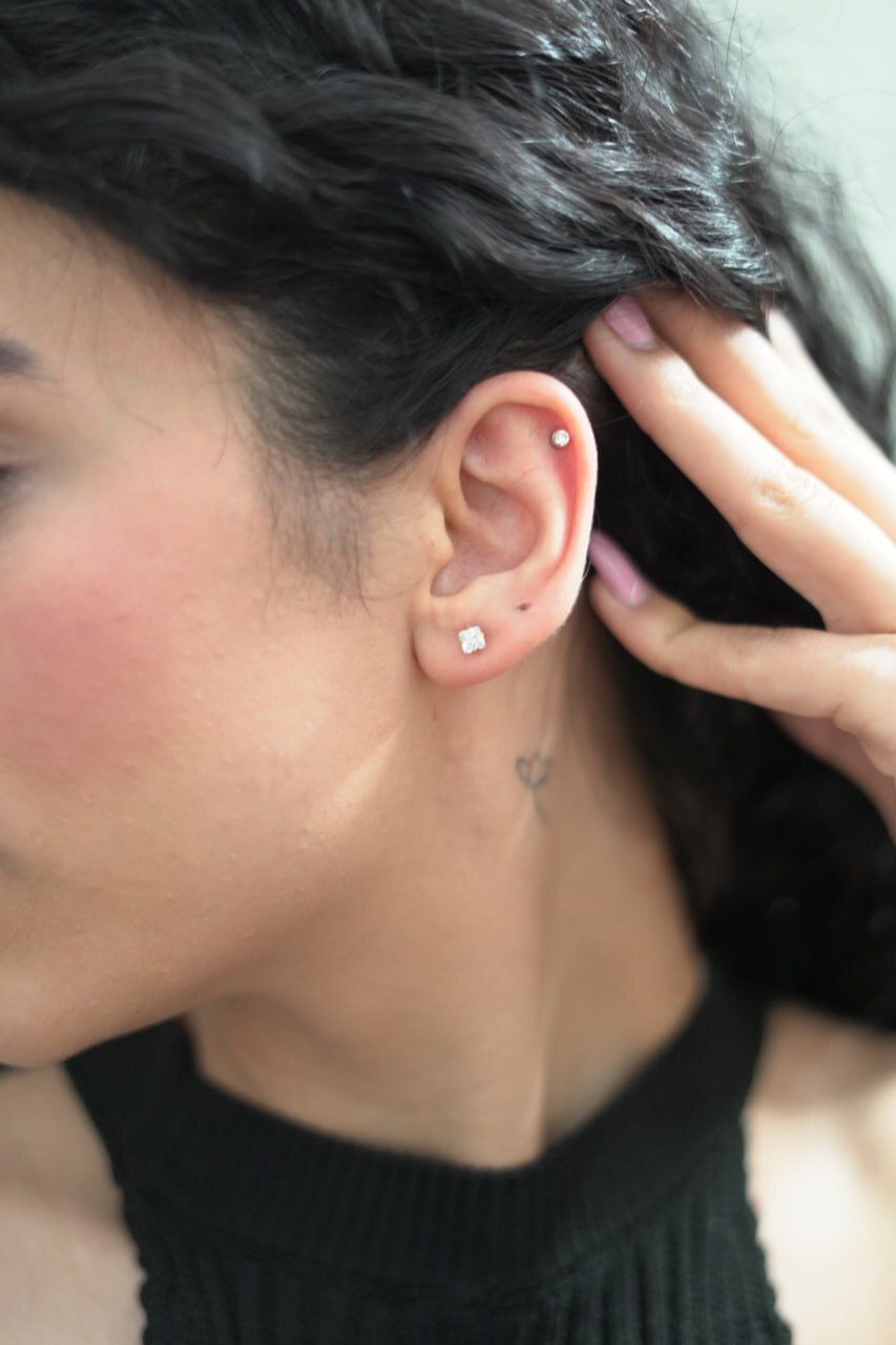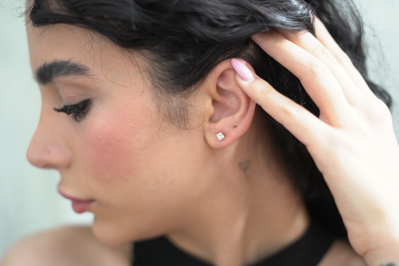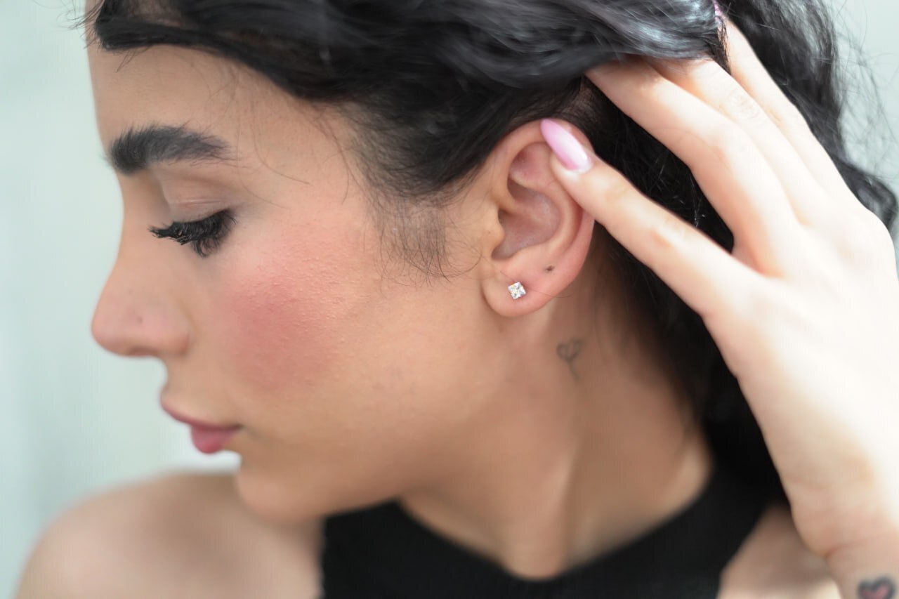پیرسینگ پلاستیکی گوش مدل نگین مربعی | انتخابی ایمن و زیبا