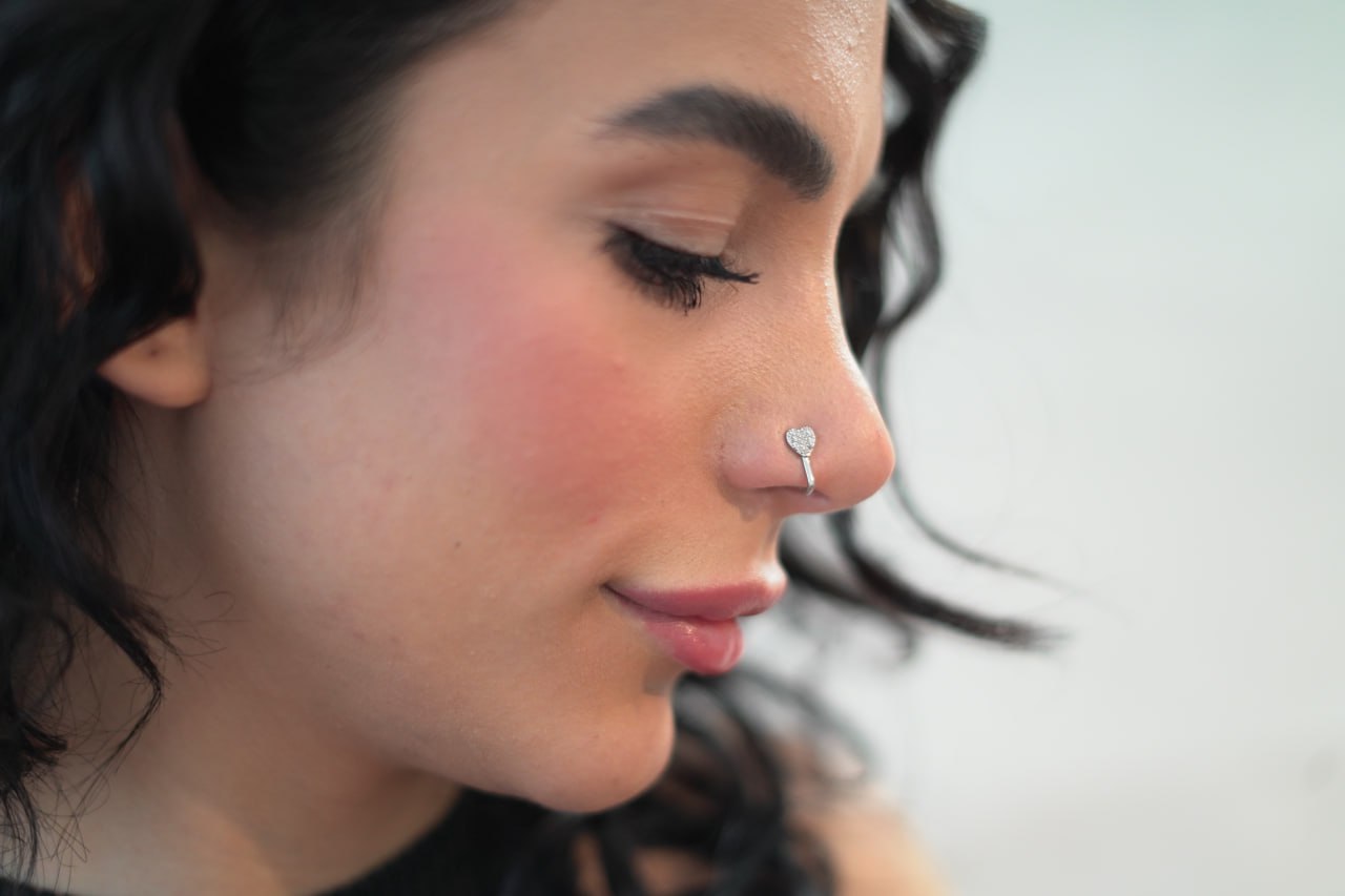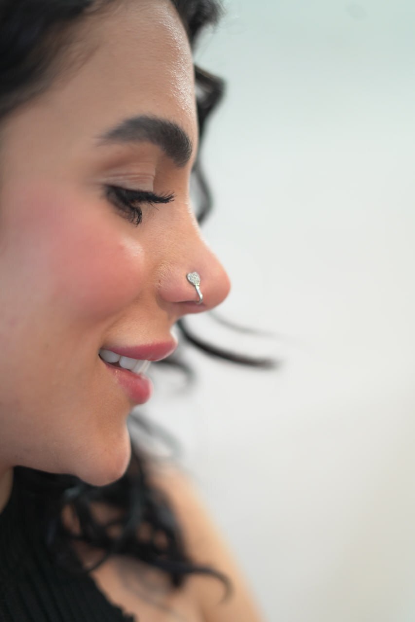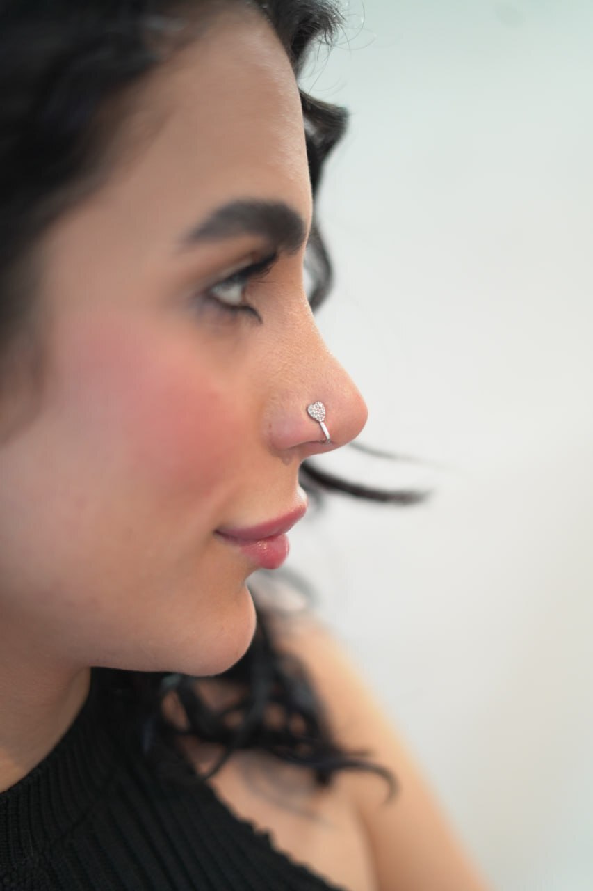 * پیرسینگ بینی قلب: با طراحی ظریف قلب و نگینهای درخشان.