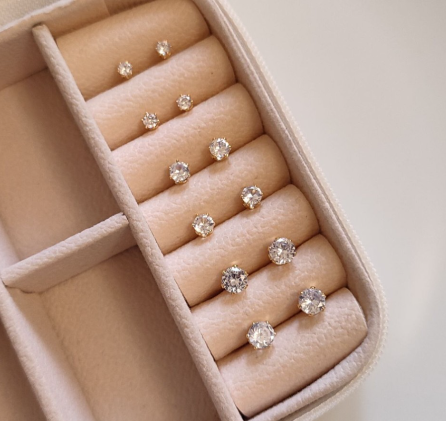 اگر گوشتان چندین سوراخ دارد، گوشواره میخی تک نگین ساده “پادشاه ترکیبها” است. شما میتوانید این مدل ریز و ظریف را در سوراخهای دوم یا سوم گوش استفاده کنید و در سوراخ اصلی یک گوشواره حلقهای یا آویز بیندازید. این چیدمان (Ear Stacking) یکی از داغترین ترندهای دنیای مد است که ظاهری مدرن و جذاب به شما میدهد.