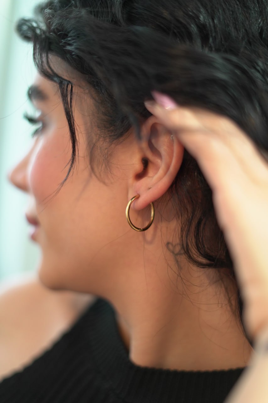 * یک جفت گوشواره حلقه ای طلایی: با طراحی حلقهای ساده و درخشان.