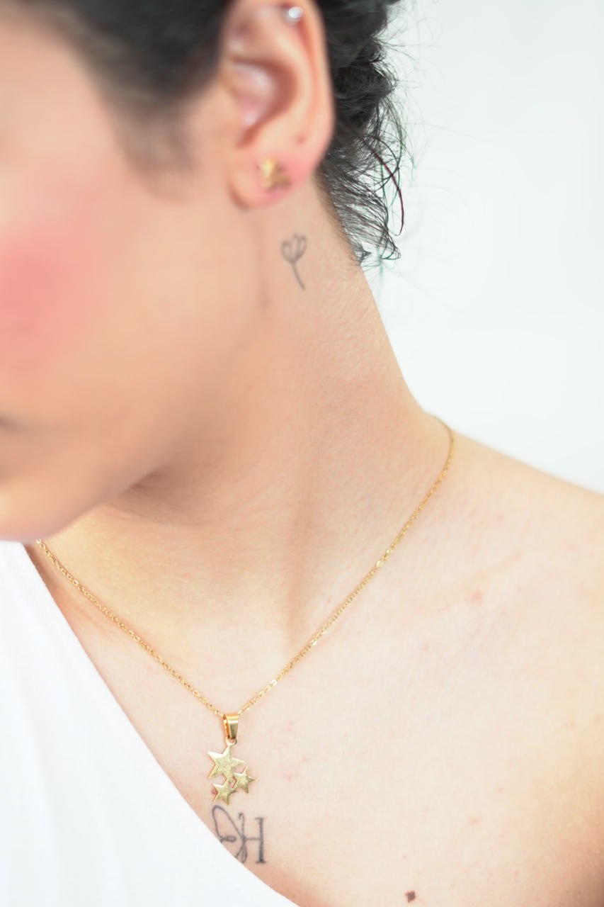 نیم ست استیل طرح سه ستاره  با طراحی مدرن و جذاب، به راحتی می‌تواند با هر نوع استایلی هماهنگ شود. این محصول شامل یک گردنبند و یک جفت گوشواره است که با الهام از زیبایی ستاره‌ها طراحی شده‌اند. طراحی خاص و منحصر به فرد این محصول ، آن را به یک انتخاب ایده‌آل برای هر سلیقه‌ای تبدیل کرده است. با استفاده از این محصول ، شما می‌توانید در هر مناسبتی، از مهمانی‌های رسمی گرفته تا دورهمی‌های دوستانه، بدرخشید.