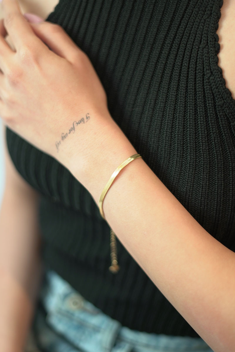 طول این دستبند ماری به گونهای طراحی شده که به راحتی دور مچ قرار بگیرد و با قفل قابل تنظیم، برای اندازههای مختلف مچ مناسب باشد. طراحی منعطف این دستبد، استفاده از آن را بسیار آسان کرده است.