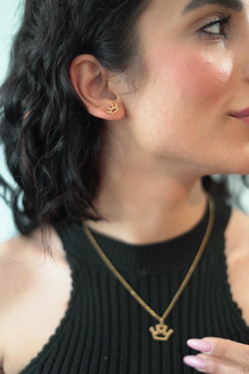 - یک جفت گوشواره میخی طرح تاج
