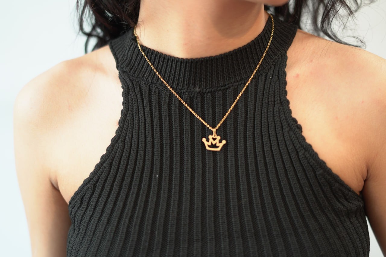 نیم ست استیل طرح تاج شامل یک گردنبند و یک جفت گوشواره است که به زیبایی طراحی شدهاند. طراحی تاج این نیم ست نمادی از شکوه و زیبایی است و میتواند به هر استایلی جلوهای خاص ببخشد. این محصول به دلیل استفاده از استیل ضد زنگ، از دوام و ماندگاری بالایی برخوردار است و میتواند به عنوان یک اکسسوری روزمره یا شیک برای مناسبتهای خاص مورد استفاده قرار گیرد.